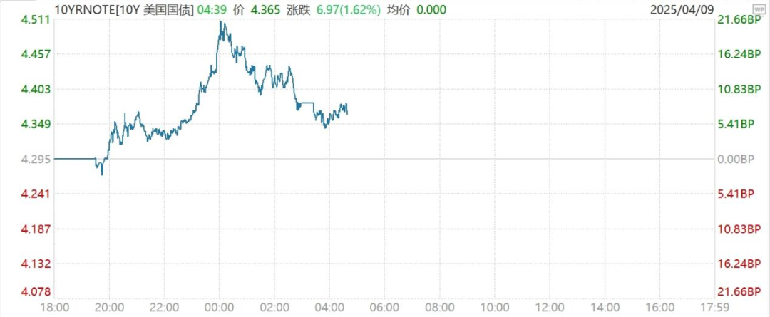 Wind数据显示,截至北京时间4月9日16:39,10年期美债收益率报4.37%,较前收盘价上行8基点。